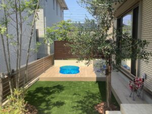リビング前の人工芝(守山区)